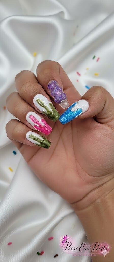 When you choose Press Em' Pretty, you're not just buying a set of nails; you're investing in a piece of wearable art literally made for you. Our custom sets stand out through superior artistry, exceptional quality, and a perfect fit customizable to you .